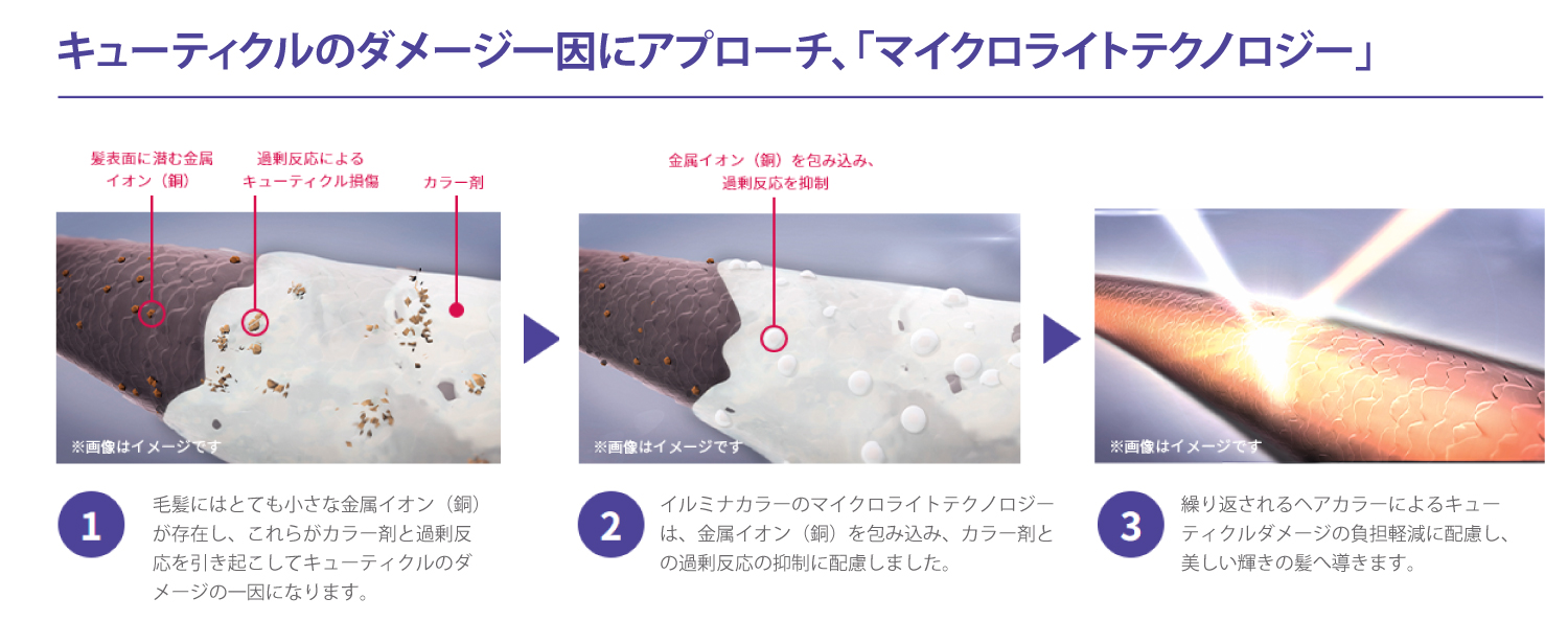 透明感のある美しい仕上がりが特徴のイルミナカラーをはじめ、厳選したさまざまなカラー剤を使用しています。また、90%以上オーガニック成分の白髪染めや、頭皮と髪に優しいグレーカラー剤もご用意しています。時間・塗布量・温度など、カラー施術のルールを意識しながら、髪と頭皮をケアし、最小限のダメージで美しい仕上がりを心がけています。